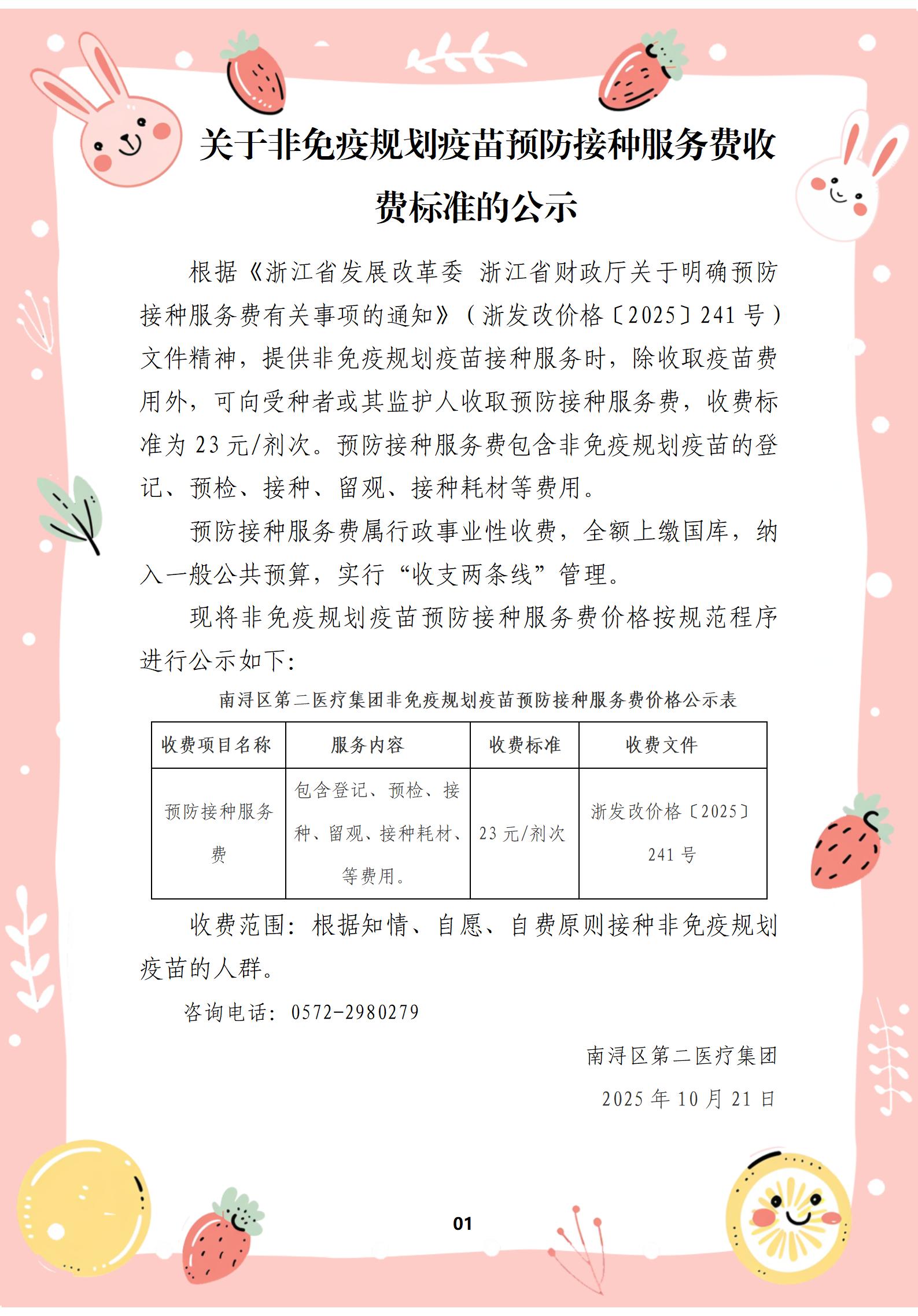 关于非免疫规划疫苗预防接种服务费收费标准的公示